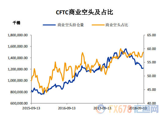 结合空头持仓可以看出,商业持仓空头占比仍保持在一个相对稳定的水平,但是持仓量却出现了下降,这意味着目前市场上有部分空单持仓离场,这可能会对油价形成短时间的支撑。