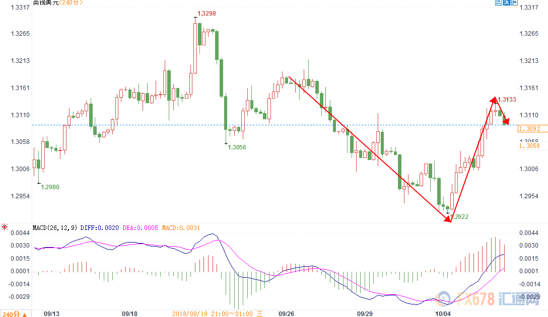 欧盟委员会主席容克在10月5日采访时表示,英国和欧盟达成脱欧协议的可能性提高了,双方有望在11月达成协议。但是容克同时强调,双方目前双方仍无法就一些课题达成共识,因此英镑短期内仍可能存在变数。因此英镑目前做直接上冲的可能性不大,短时间仍将维持震荡走势。