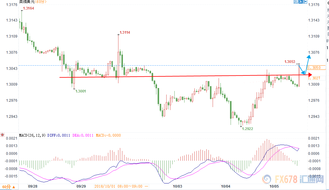 今日是非农日,在非农数据公布前,大概率行情将维持盘整走势。早些时候美国ADP9月就业人数增加值为2月以来最高,达到了23万,但是数据公布后市场反应平淡。市场人士表示,由于飓风佛罗伦萨的影响,非农就业人数预计只有18.8万人,如果意外好于预期,预示着就业市场进一步走强,可能将推动美元的进一步走高。