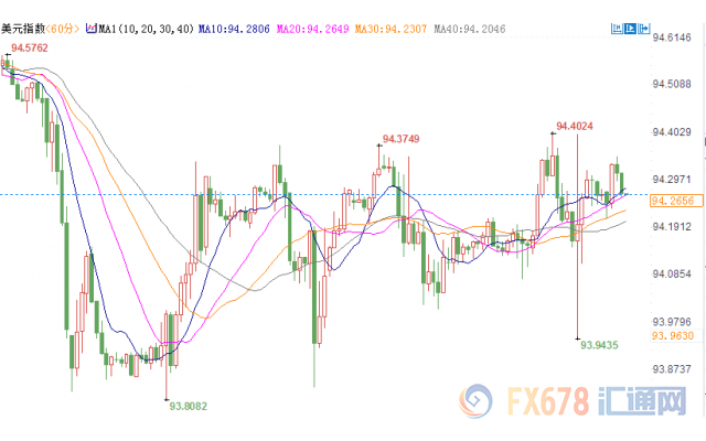 加息决定后,美元指数一度升至日内高位94.40,后有所回吐。离岸' 人民币兑美元一度跌至6.8873元。