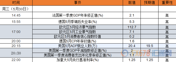 周三(5月30日)关键词:' 欧元区经济指标、美国“小非农”、一季度GDP终值