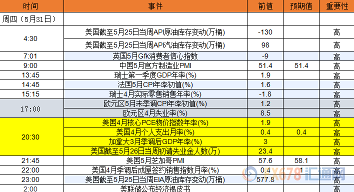 周四(5月31日)关键词:欧元区5月CPI年率、美国PCE核心物价指数、经济褐皮书