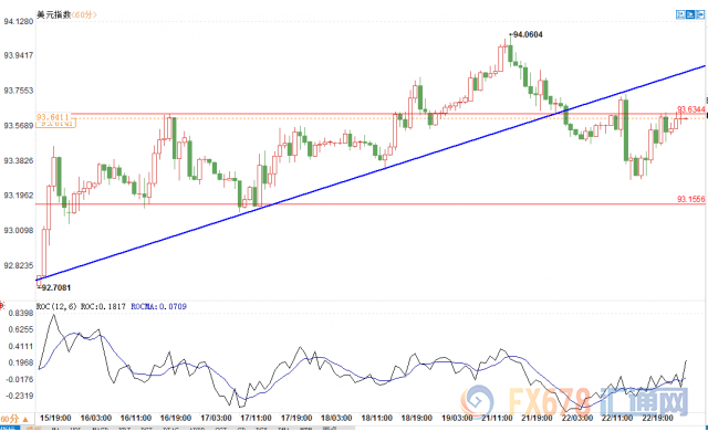 周二(5月22日),' 美元指数从五个月高位回落,交投于平盘附近,在' 美国国债收益率上升和中美贸易紧张关系缓解触发全面反弹之后失去动能。截止当前,美元指数报93.60,日内涨幅0.06%。