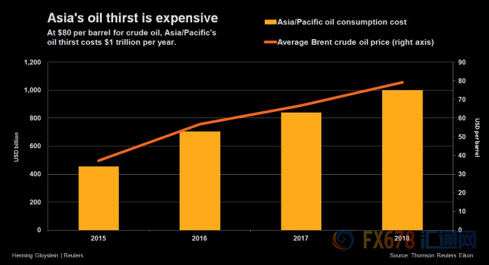 随着布伦特原油突破了80美元/桶,亚洲的原油需求也达到了创记录的水平,推动了该地区对于原油的需求达到了1万亿美元的价值。这一水平几乎是2015年至2016年油市低迷时期的两倍。