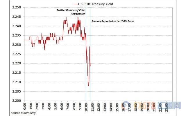 科恩将会辞职的推特消息出现后,曾引起' 美元和美债收益率的短线下跌。