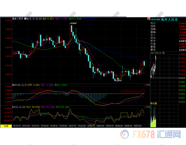 北京时间9:34,美元兑离岸人民币在开盘后冲高近60点,现交投于6.8488一线。