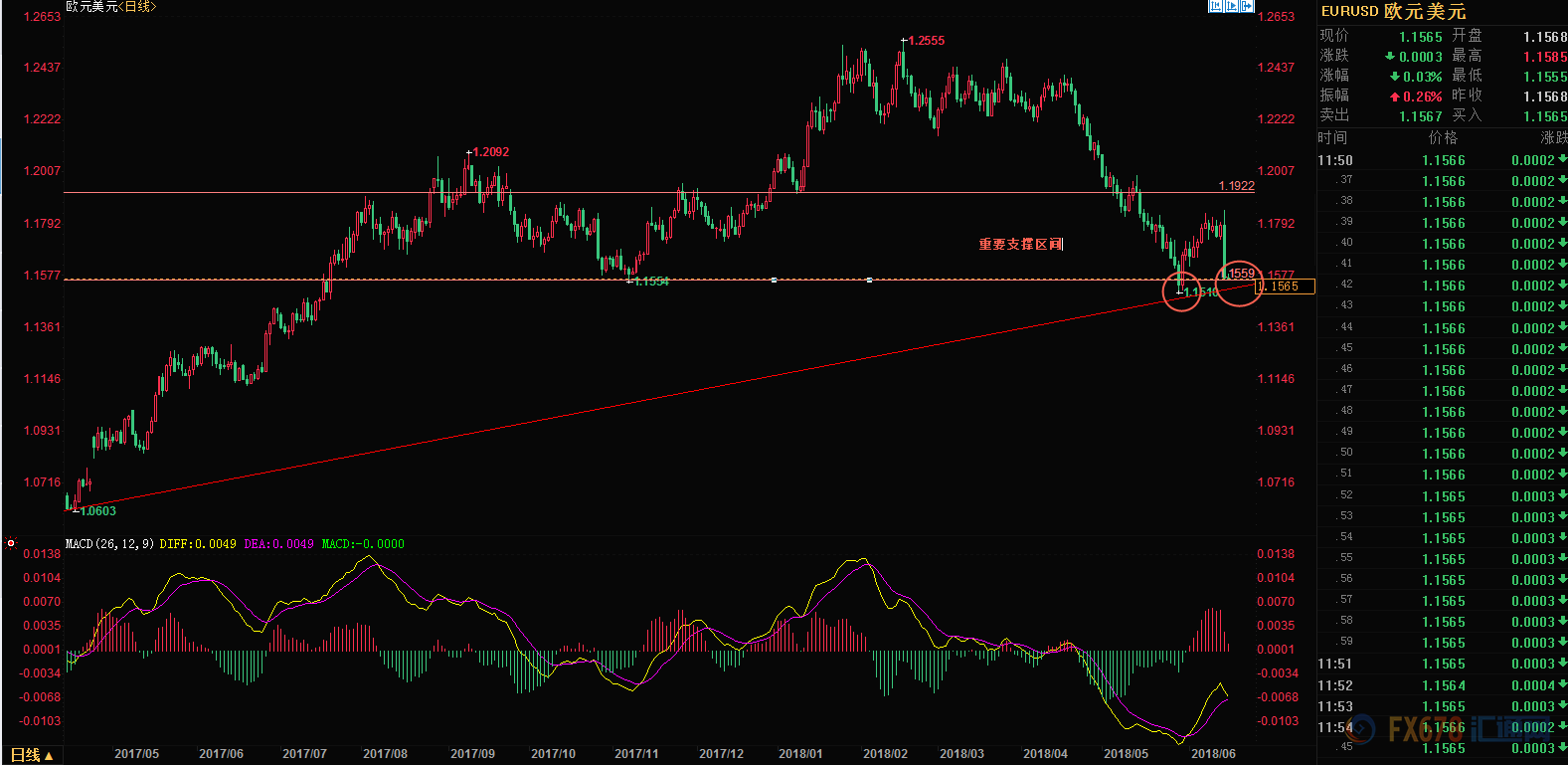 (欧元兑美元日线图)