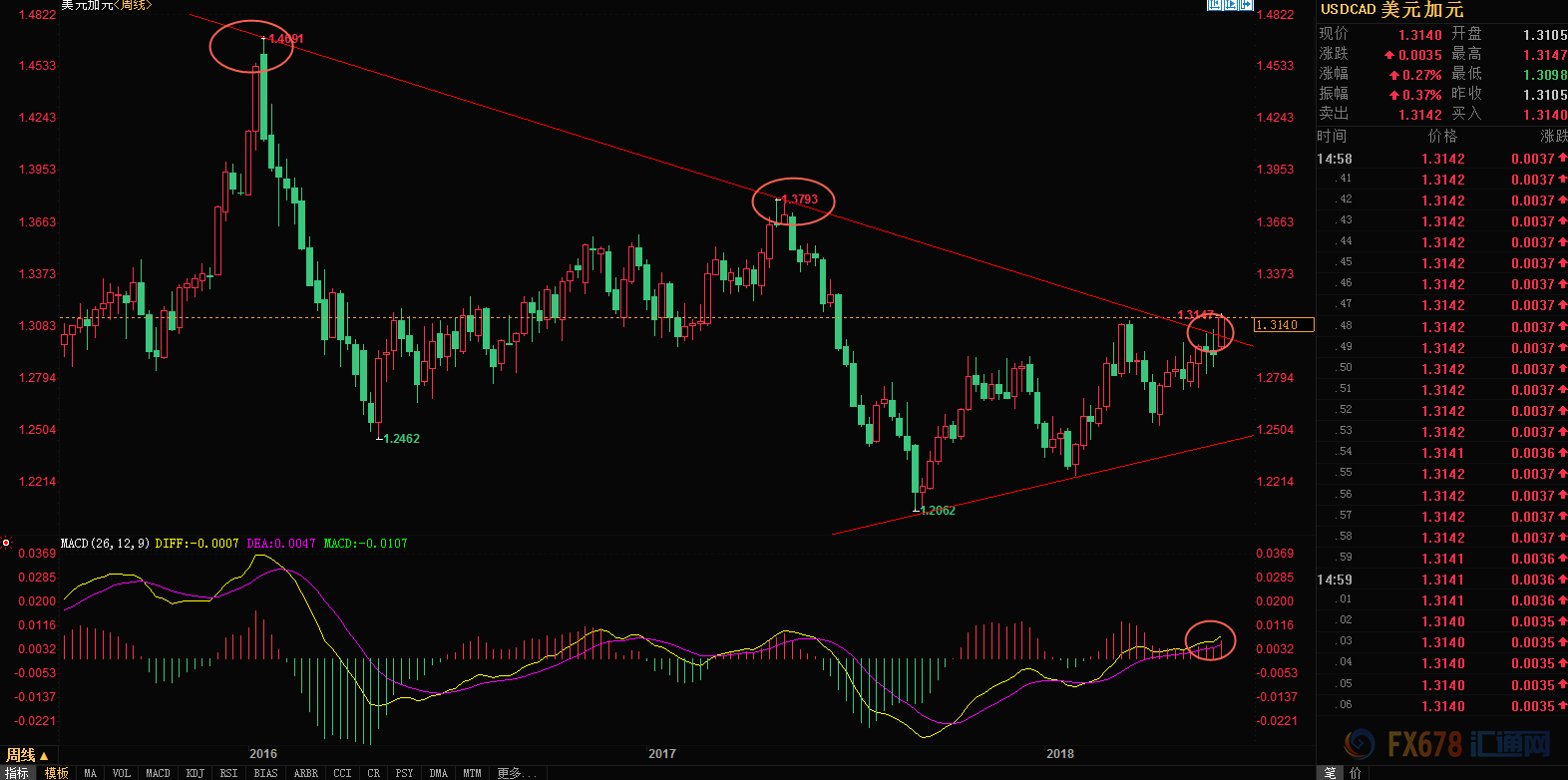 (美元兑加元周线图)