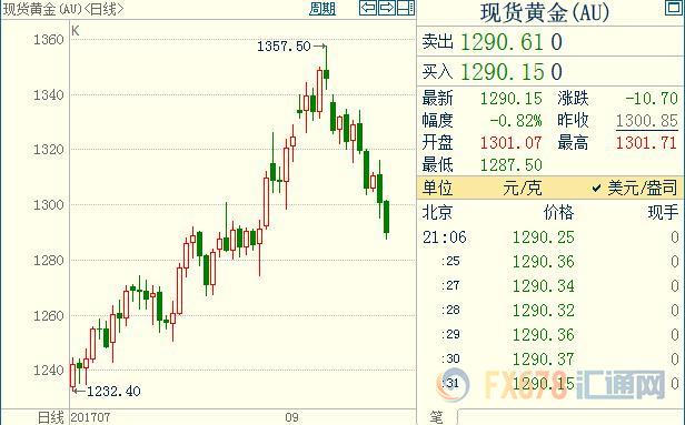 汇通网讯——9月21日,避险资产继续遭到投资者无情的抛弃,现货黄金创8月25日以来新低1288.20美元/盎司。美联储在新政中如期宣布了缩表,但让广大投资者始料未及的是,美联储对于年底前可能再度加息的预期仍异常看好。