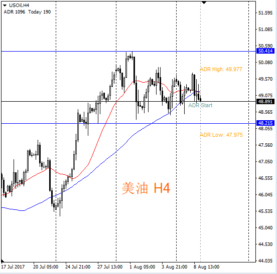 H4周期:震荡区间48.21—50.41;