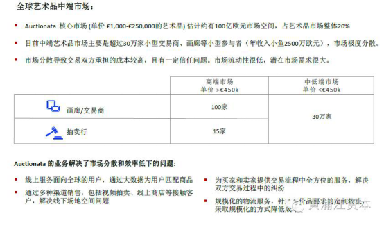 从市场需求来看,Auctionata主要面向中端市场,同高端拍卖形成差异化竞争,中端市场约750亿欧元。