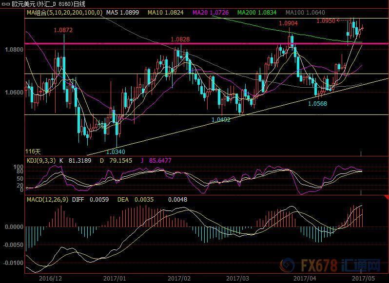 另一方面,5月7日法国还将举行第二轮法国大选,周三(5月3日)法国总统独立候选人马克宏与极右翼总统候选人勒庞举行电视辩论,目前民调普遍显示马克宏将击败勒庞,不过该预期已经在上周有所消化,给欧元的支撑可能较为有限;但若勒庞的支持率意外升温,可能在第二轮大选结果正式出炉前拖累欧元。