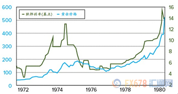 我们现在回溯到20世纪70年代,通过历史的走势我们来看一看美国利率和金价到底是一个什么样的关系。