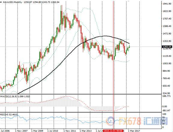 现在我们很可能会重复当年的历史,因为黄金价格和利率在长期上一直保持着较高的水平。近些年,美联储自2015年12月16日起已经上调了3次利率。数据显示,黄金从1040美元上涨至当前的1265美元。