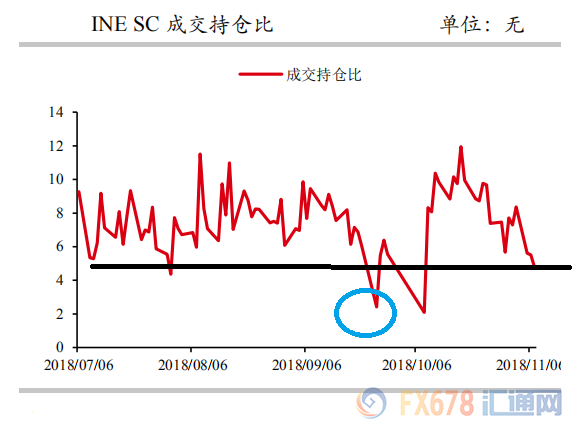 从成交持仓比看,昨日提到,一般而言该指标出现上涨,往往会对应INE原油的一波回落,从今日走势看,该指标今日已经有所回升,同时日内INE原油也明显出现了一波回落,使得该指标有所修复,目前维持在一个相对中性的区域,因此晚间还将在中性区域附近做一波试探,可能会带动INE的一波走势。