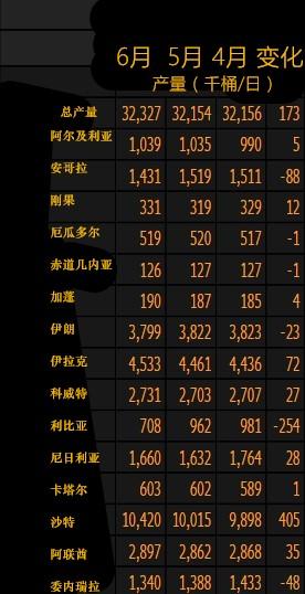 OPEC产油国6月产量变化一览