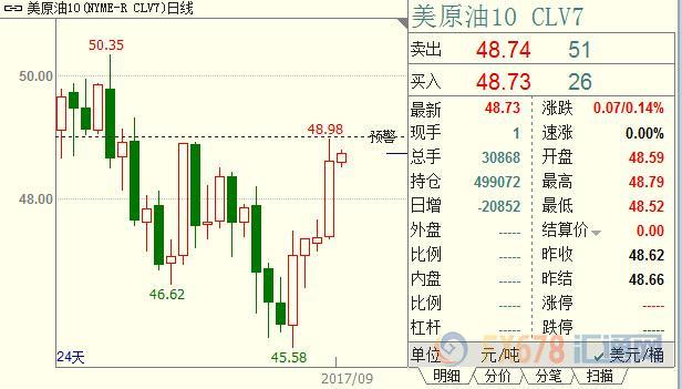 周三(9月6日),原油期货价格在平盘附近窄幅震荡,因飓风哈维造成美国墨西哥沿岸的炼厂停产,原油需求仍然低迷。