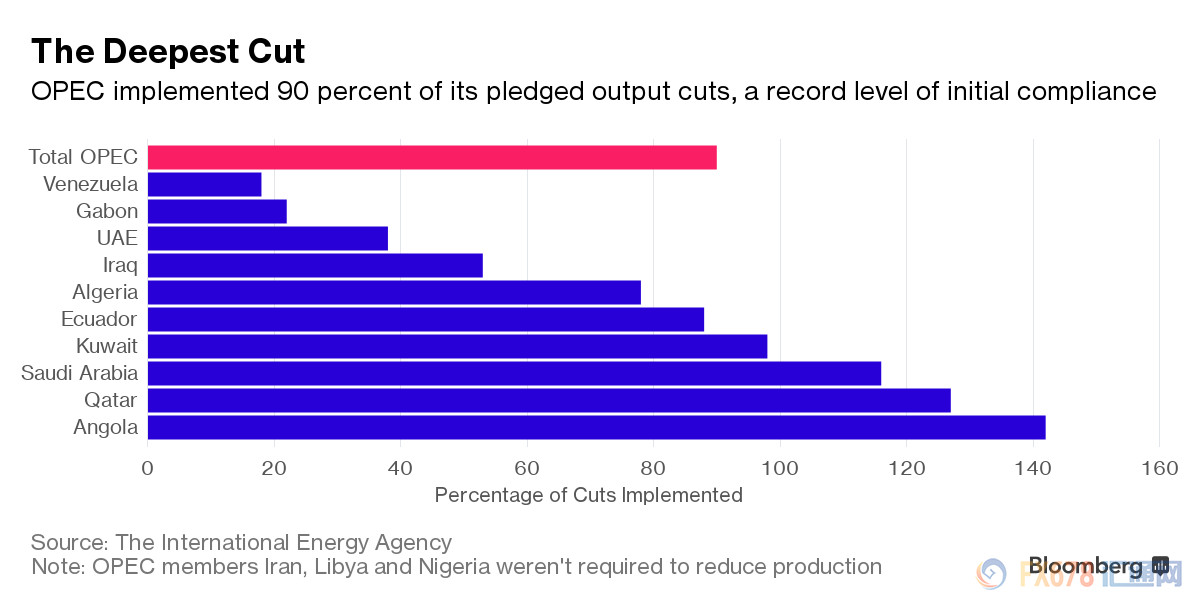 国际' 能源署(IEA)公布的5月报显示,2017年OPEC减产协议执行率为96%;