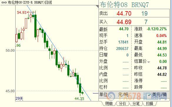 布伦特原油可能反弹至每桶45.62美元处的阻力位,之后重新试探44.41美元支撑位。