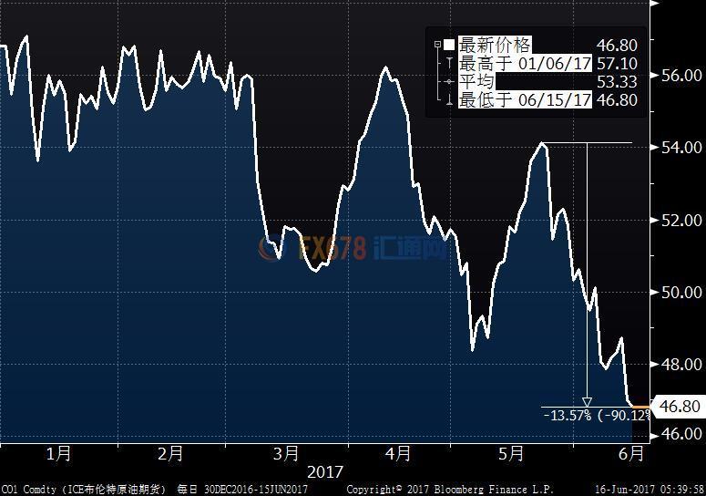 截至目前,布油交投于47美元/桶以下,自减产协议被延长以来已经下跌超过13%。