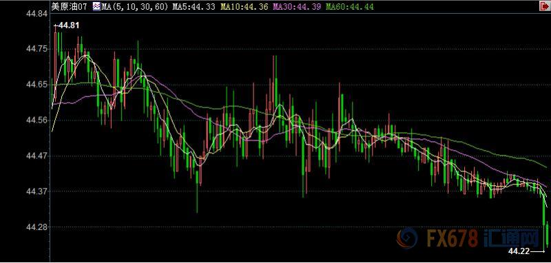 ' 美国WTI 7月' 原油' 期货电子盘价格周四(6月15日)收盘下跌0.44' 美元,跌幅0.98%,报44.24美元/桶。油价周四盘中触及六个月低位,因全球库存高企,引发市场担忧,尽管石油输出国组织(' OPEC)和其它产油国减产,但尼日利亚、利比亚和美国增产将会使油市继续保持供应过剩的状态。