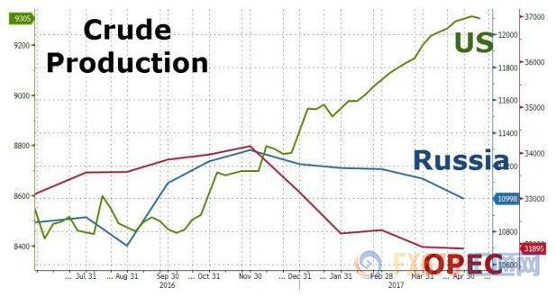 2016年年底OPEC与非OPEC产油国达成减产协议并提振油价上涨,而时至今日,美布两油已经抹去这半年多来的油价涨幅,OPEC通过减产来提振油价的努力似乎已经宣告失败。
