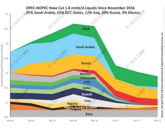 OPEC以外国家的减产执行力却更让人担忧。虽然有迹象表明俄罗斯将同意进一步减产;但该国目前已减产20万桶/桶,不及此前承诺的30万桶/日。
