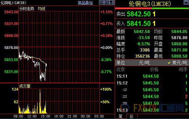 北京时间15:20,LME三个月期铜报5835美元/吨。 【免责声明】本文仅代表作者本人观点,与汇通网无关。汇通网对文中陈述、观点判断保持中立,不对所包含内容的准确性、可靠性或完整性提供任何明示或暗示的保证,且不构成任何投资建议,请读者仅作参考,并自行承担全部风险与责任。
