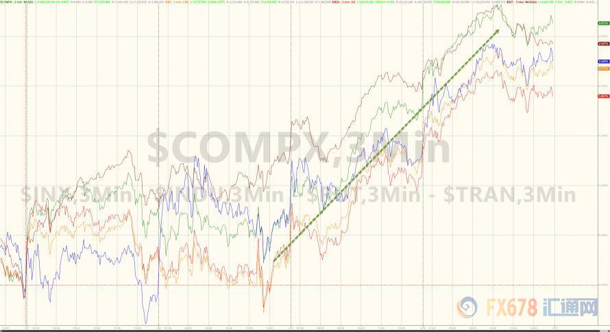 汇通网讯——周四,股市又一次强势上扬,标准普尔500指数升至近两个月来的新高,收盘上涨0.9%,现在较50日均线高出45点。道琼斯指数和纳斯达克指数也收在了舒服的位置,分别上涨了0.8%和0.9%,而罗素2000指数上涨了0.5%。