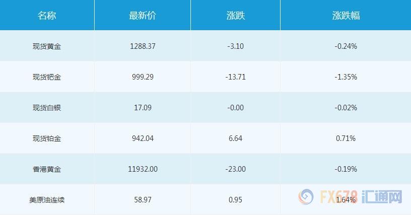 tal' 贵金属方面,本周开盘亦无明显跳空缺口。其中,现货黄金开盘后于平盘下方盘整,截至发稿前报1288.28美元/盎司;现货白银盘整于17美元/盎司整数大关上方,报17.05美元/盎司。