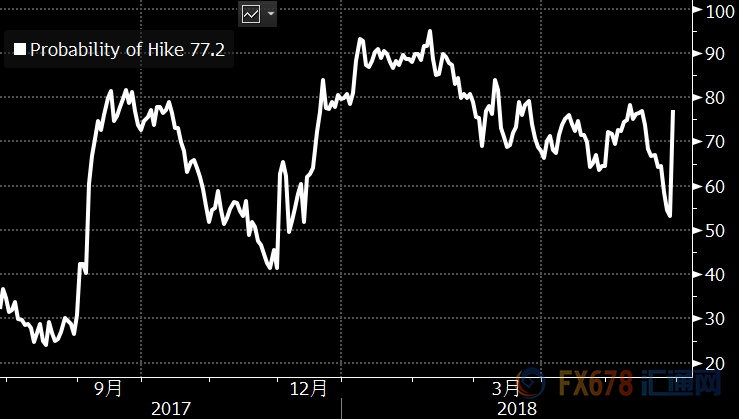 此次态度的转变预示着7月加息的可能性大增,根据利率' 期货定价显示7月加息概率一夜间飙升了20%,达到了77%。