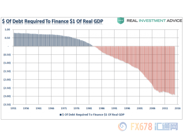 nload=imgresize(this); >如今,美国经济实现每1' 美元的GDP增长需要举债近乎4美元,这绝非危言耸听。也就是说,美国经济总量目前为16.7万亿美元,债务水平估计在65万亿美元,债务与GDP的比率约为3.9:1。