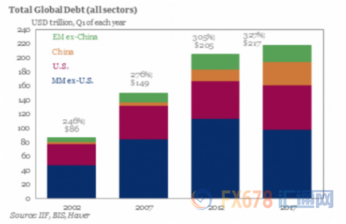 目前全球债务达233万亿美元,人均债务达到3万美元。全球债务可能已经到了多数债务永远得不到偿还的程度。我们这一代人肯定还不清,可能要我们的孙辈这一代也未必偿还得了。事实上,随着全球债务持续攀升,巨额巨债是否拥有可持续性,本来就是个大问题。