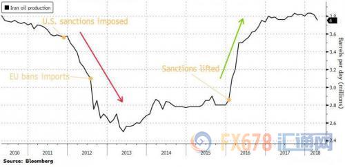 nload=imgresize(this); >从图中可以看出,美国2012年对伊朗实施制裁后,伊朗石油产量大幅下降。但2016年制裁取消后,伊朗石油产量大幅反弹。