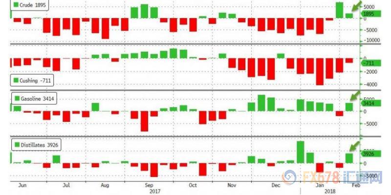 EIA报告显示,汽油和柴油等馏分油库存也分别增加了340万桶和390万桶,均超出市场预期。