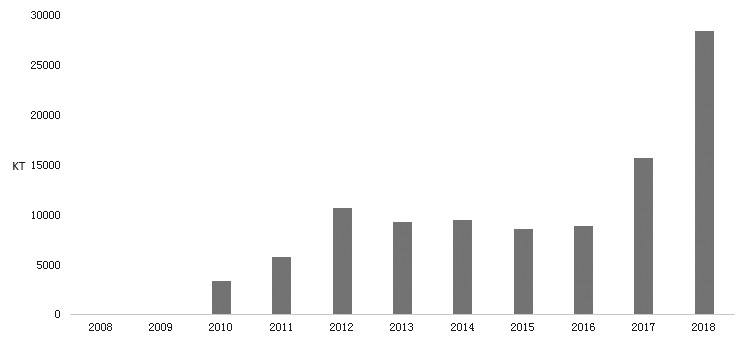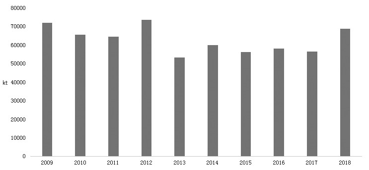 近年来,受世界各国环保去产能影响,煤炭产能过剩问题尤为突出,煤炭价格持续低迷,但澳大利亚煤炭低灰、低硫、高热量的优点相对于他国产品仍然具有不可小觑的竞争力。澳大利亚煤炭产量虽然自2016年以来持续负增长,但整体降幅有限。2018年澳大利亚煤炭总产量4.83亿吨,同比下降3.3%。
