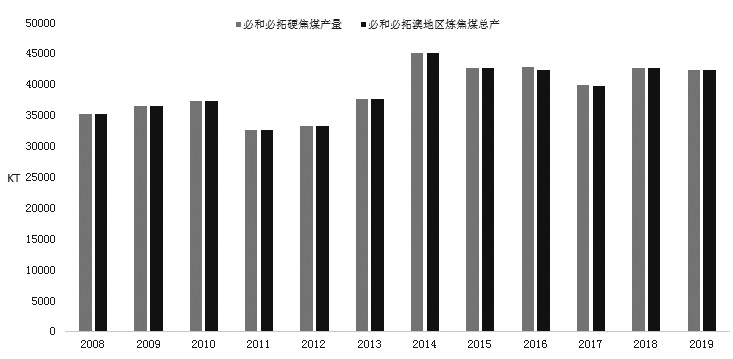 图为必和必拓硬焦煤产量变化