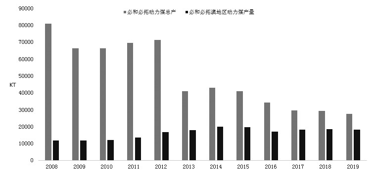 图为必和必拓动力煤产量变化