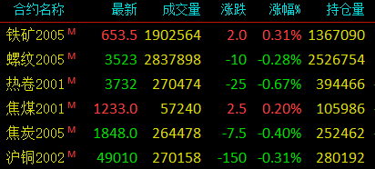 原标题:期货要闻简讯丨黑色多数下跌 铁矿石小飘红