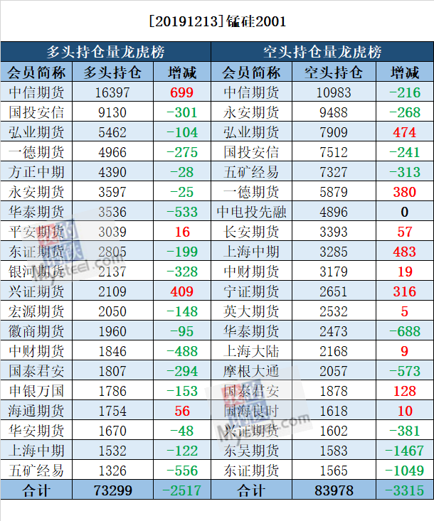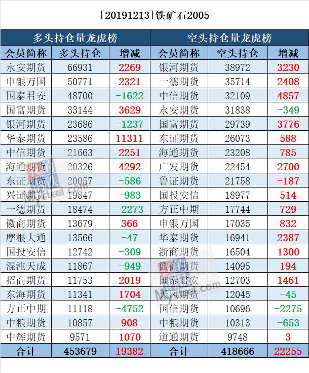 截至12月13日收盘,螺纹2005收3523,跌0.28%;热卷2001收3732,跌0.67%;铁矿石2005收654,涨0.31%;焦炭2005收1848,跌0.4%;焦煤2001收1223,涨0.2%;硅铁2001收5728,跌1.24%;锰硅2001收6354,无涨跌。