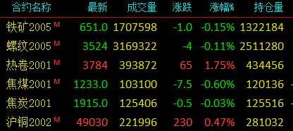 ◎螺纹钢跌0.11%、热卷涨1.75%
