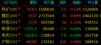 ◎螺纹钢涨0.68%、热卷涨1.52%