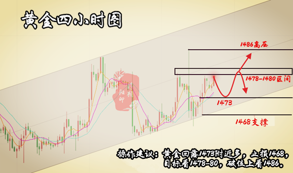 操作建议:黄金回落1473附近多,止损1468,目标看1478-80,破位上看1486。