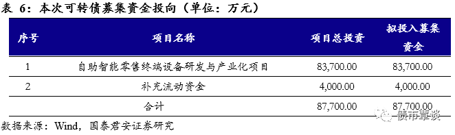 公司本次发行可转债拟募集资金总额不超过8.77亿元,将主要用于自助智能零售终端设备研发与产业化项目和补充流动资金。