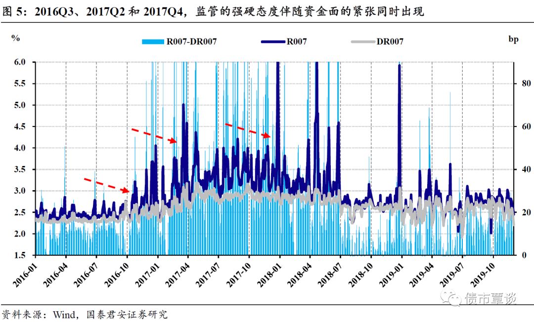 第二,在预期层面,2017年Q3市场对于监管整体忽视,而当前对于猪通胀预期却相对充足。回顾2017年监管推进节奏,1季末和2季初是高峰,四季度的监管冲击,一方面来自市场将监管与资金趋紧“绑定”,另一方面来自于2017年三季度市场对于监管的忽视。反观当前,市场对于2020年1季度结构性通胀“破4摸5奔6”后趋势性回落的预期则相当充分。