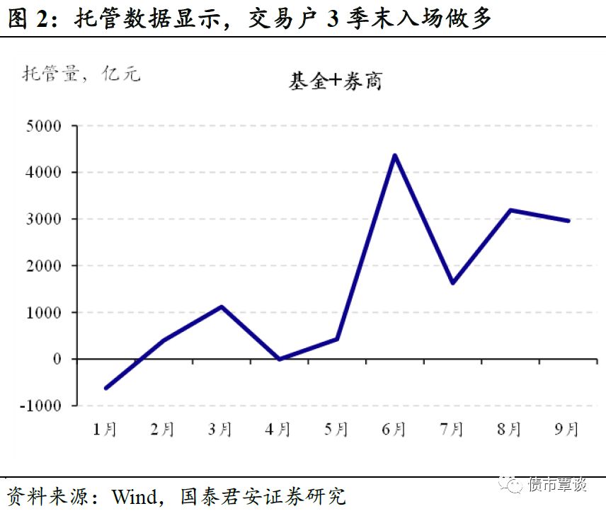3季度的横盘,市场做多情绪开始酝酿。从一致预期的角度,彼时一个较为普遍的多头看法是经济前高后低、倒逼政策宽松。截止到三季度,债市调整一年有余,而前三季度的调整也相对温和。整个3季度的横盘中,以工业增加值(当月同比从6月的7.6%回落至8月的6.0%)、固定资产投资(累计同比从6月的8.6%回落至8月的7.8%)为代表的实体经济数据也显示经济在供需两端均开始趋弱,同时在此前两轮“抢跑”的学习效应下,市场的做多情绪开始酝酿。