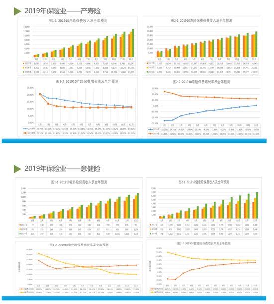 2019年1-10月份,保险业保费收入入37057.79亿元,同比增长12.19%。从产寿险公司来看,产险公司10735.72亿元,同比增长10.98%;人身险公司26322.05亿元,同比增长12.69%。