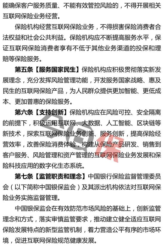 当然,新规也结合市场需求、产品特点和保险公司评价体系,设计了产品和机构的准入标准,进一步规范互联网保险的经营范围和条件。一旦出现恶意竞争、违规者,将被限制网络销售。