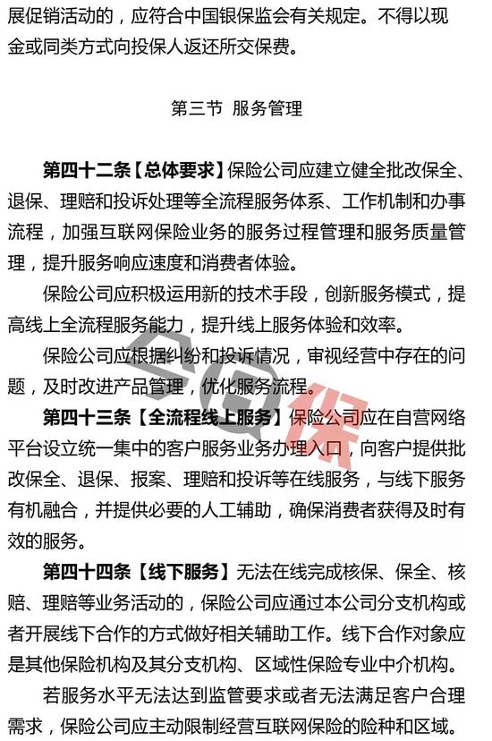 如针对互联网保险业务中部分主体重销售轻服务的问题,新规加强了对理赔、投诉等服务的管理要求,为完善互联网保险的服务体验提供制度保障;同时,允许各经营主体采取多种形式以及线上线下融合的方式,创新服务模式。