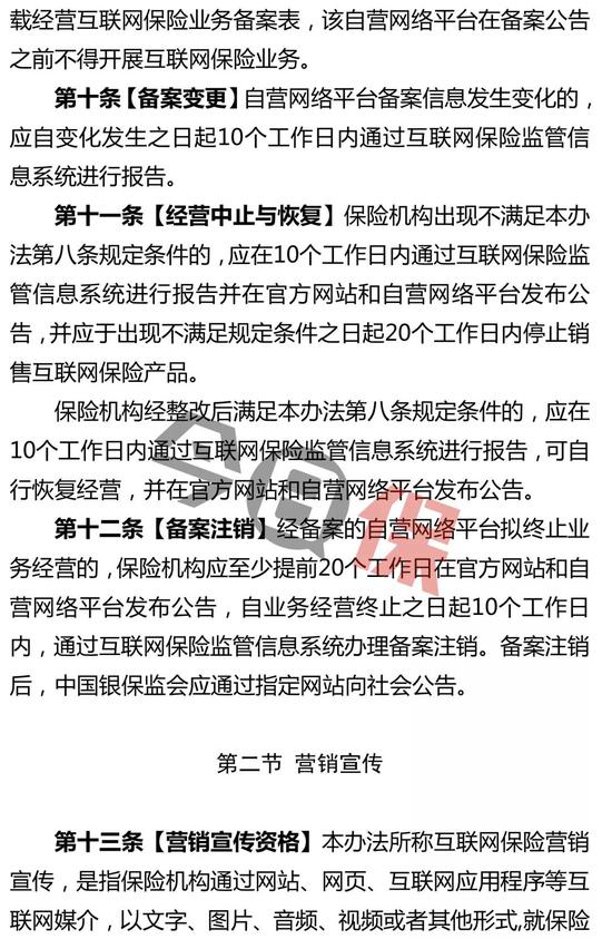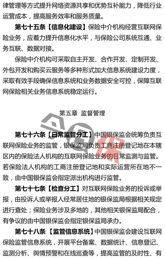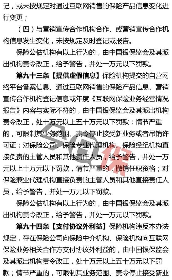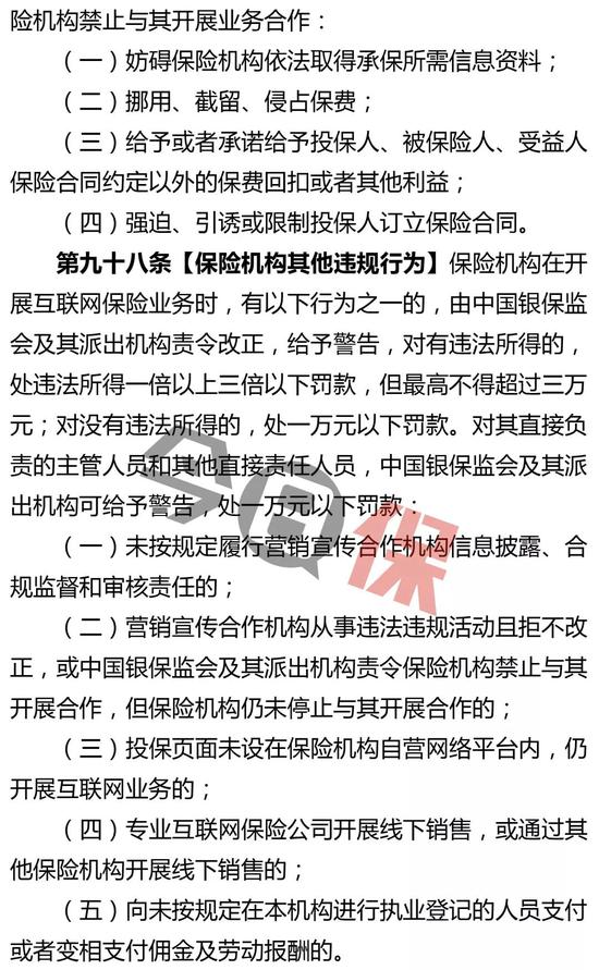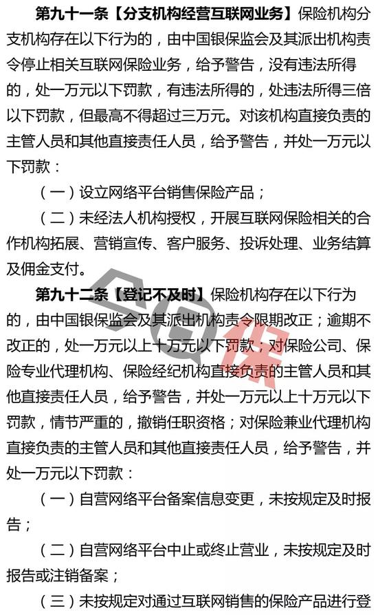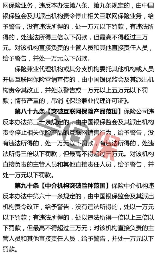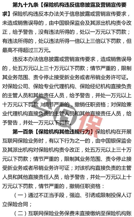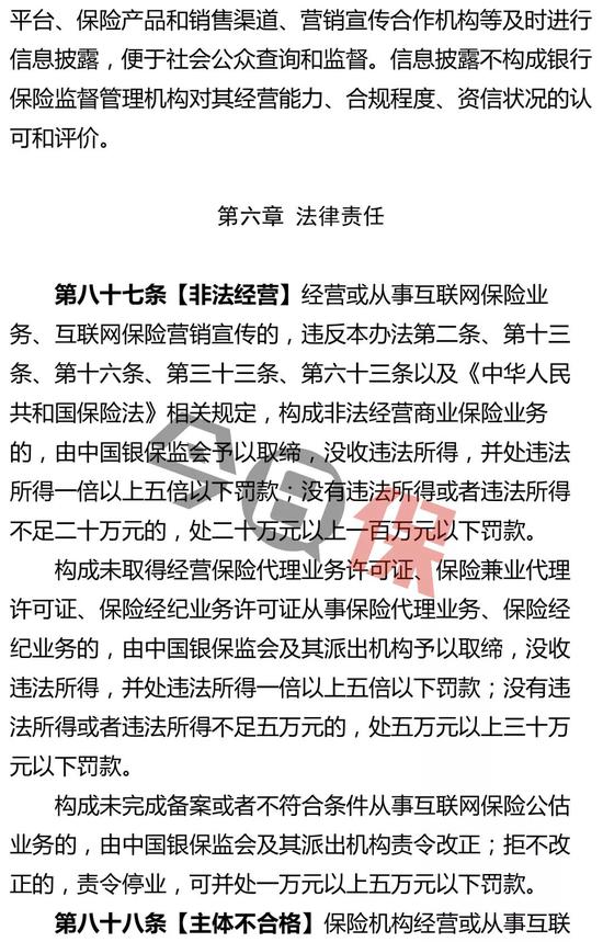 相对于暂行办法而言,升格为部门规章的互联网保险新规增设了惩罚章节——第六章,法律责任。
